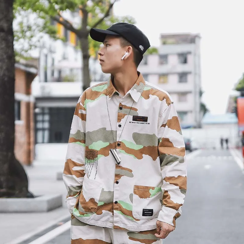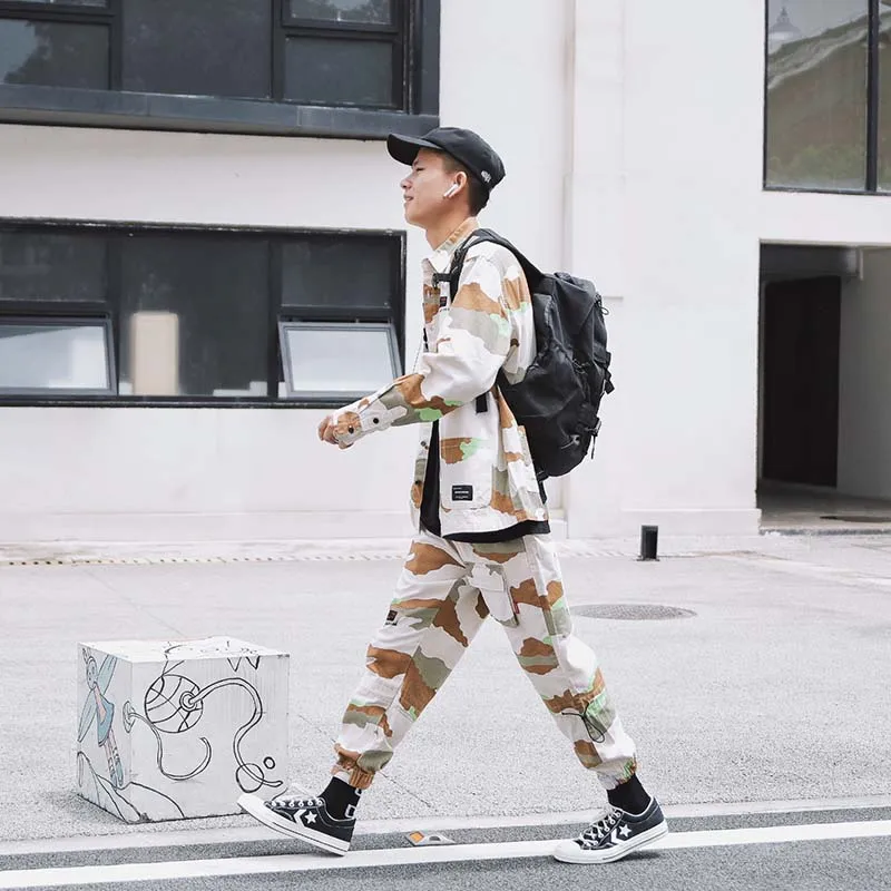 UNCLEDONJM 2 Pieces Sets men shirt tracksuit men set camouflage pants streetwear joggers pants mens clothing hip hop DV26-220 200003495